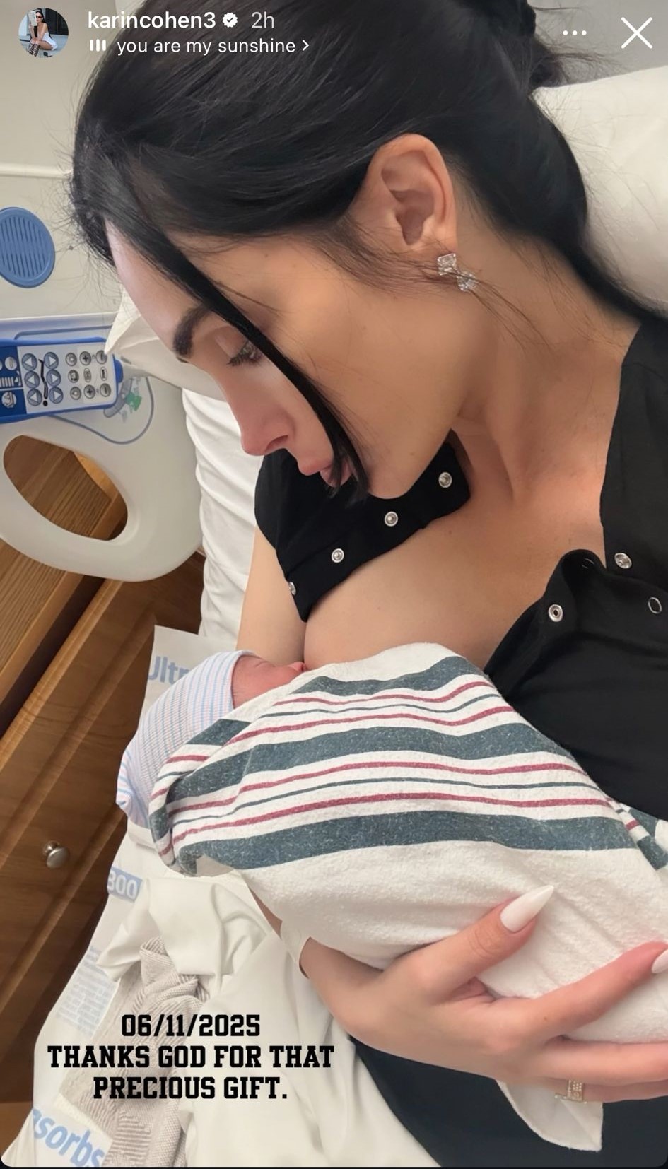 הדוגמנית קארין כהן, שמתגוררת בעשור האחרון בלוס אנג'לס, הביאה לעולם בן שלישי. בסטורי שהעלתה הלילה לעמוד האינסטגרם שלה, היא שיתפה תמונה מחדר הלידה וכתבה: "תודה לאל על מתנה מדהימה"