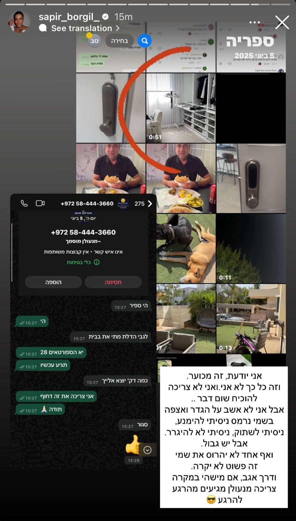 "אני יודעת שזה מכוער וזה כל כך לא אני", כתבה בורגיל לצד צילומי מסך משיחה עם המנעולן, "אני לא צריכה להוכיח שום דבר. אבל אני לא אשב על הגדר ואצפה בשמי נרמס. ניסיתי להימנע, ניסיתי לשתוק, ניסיתי לא להיגרר. אבל יש גבול. אף אחד לא יהרוס את שמי, זה פשוט לא יקרה".