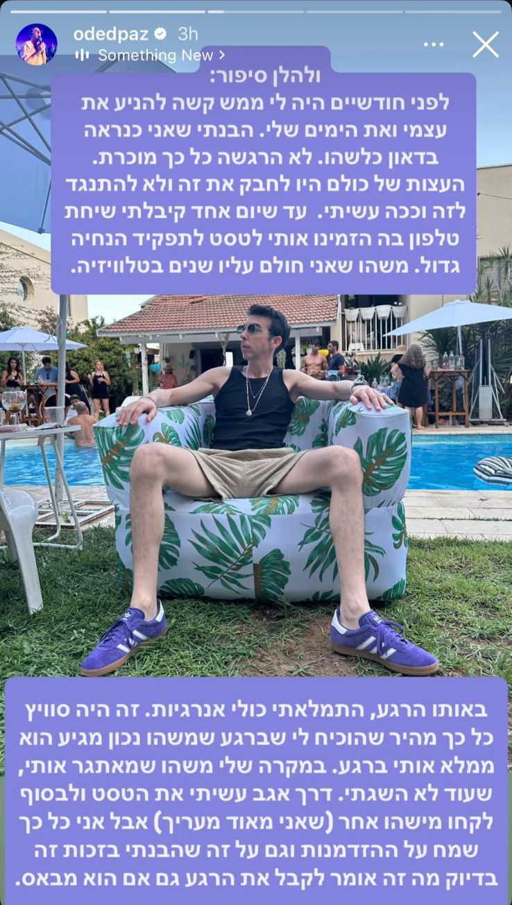 השנה האחרונה לא הייתה קלה עבור עודד פז. הוא איבד את אימו והודיע על פרידה מאשתו אחרי עשר שנות זוגיות וילד משותף. כעת פז חושף ברצף סטוריז באינסטגרם על ההתמודדות שלו בתקופה האחרונה.