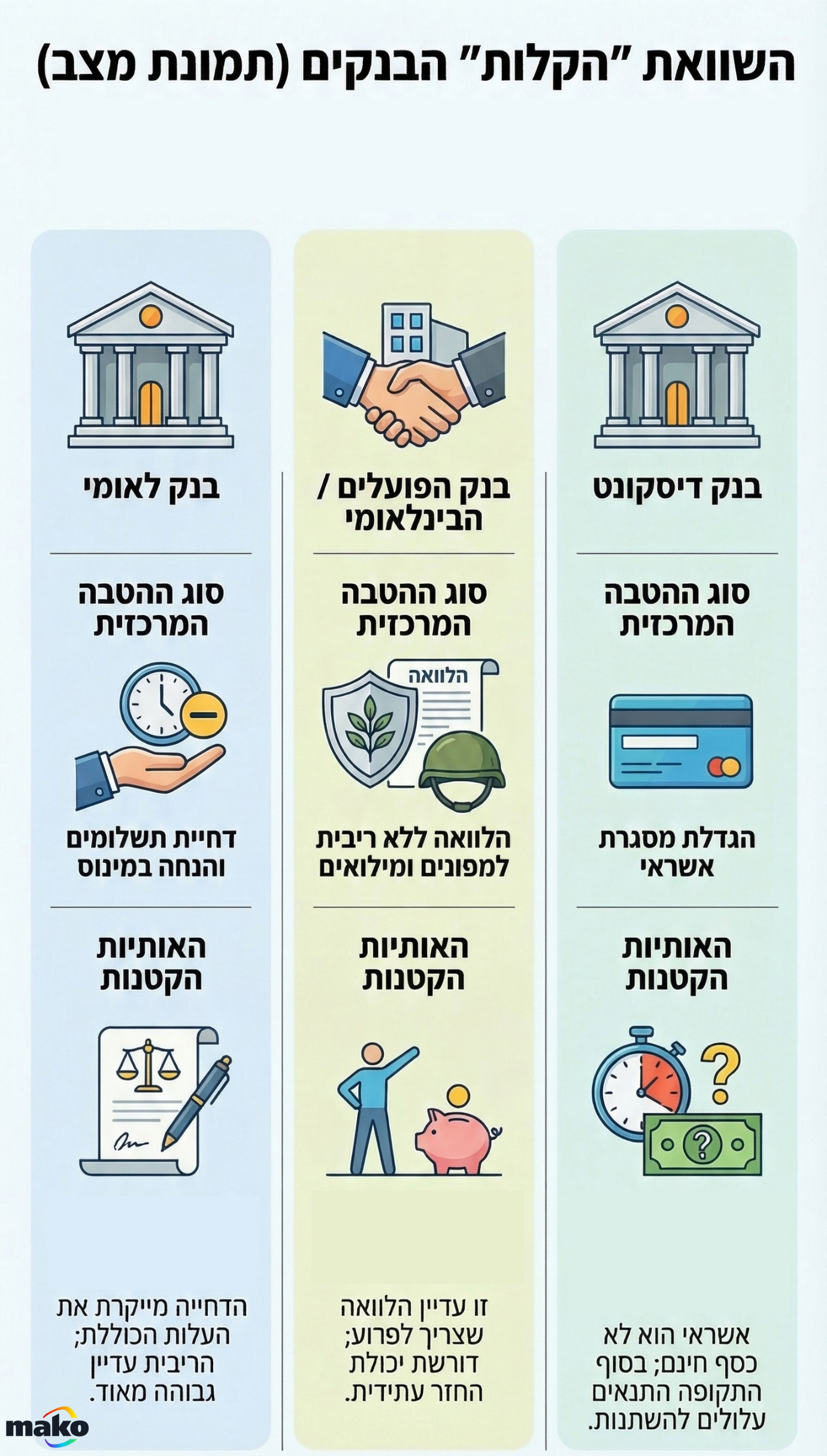 מאחורי ההודעות המרגיעות של הבנקים על “הקלות” לציבור בזמן מלחמה, מסתתרת מציאות פחות נוצצת: דחיית תשלומים, הגדלת מסגרות והנחות זמניות על הריבית אולי מספקות אוויר לנשימה בטווח הקצר, אבל עלולות לייקר את החוב ולהעמיק את הבור בהמשך