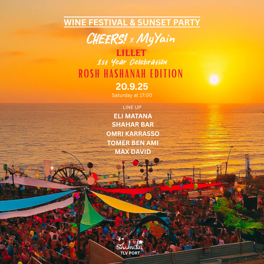 רגע לפני ראש השנה, פסטיבל היין האהוב חוזר במהדורה מיוחדת עם מסיבת שקיעה בשלוותה בנמל תל אביב. בתפריט: מוזיקת מיינסטרים מעולה, קהל בוגר ואיכותי והכרטיס כולל צמיד לשתיית יין ללא הגבלה לאורך כל האירוע.