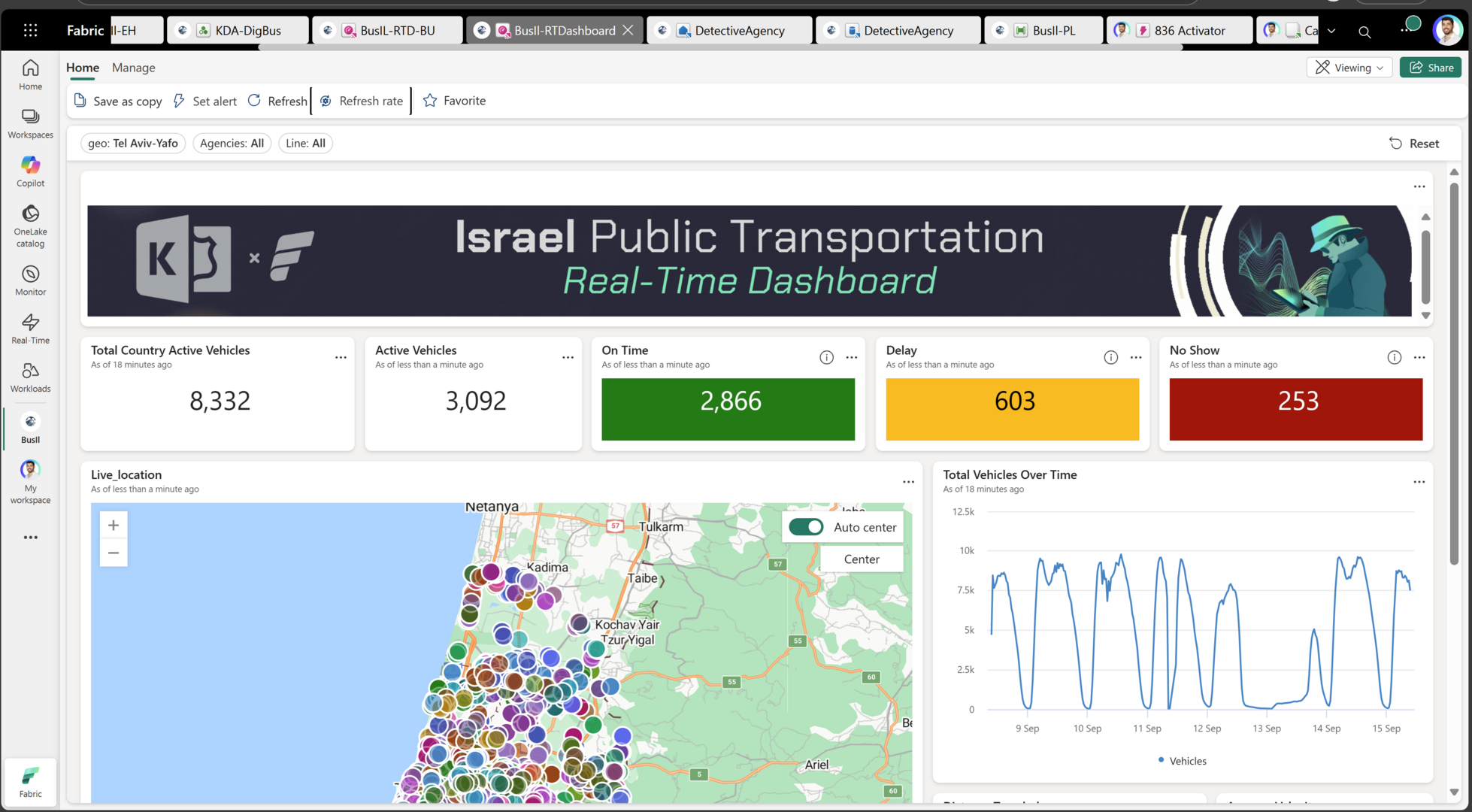 במהלך הכנס הציגו המפתחים דשבורד המכיל נתונים בזמן אמת על מצב התחבורה הציבורית בישראל – קווי אוטובוס שפועלים באזורים השונים ברחבי הארץ, כמה אוטובוסים פעילים וכמה לא, כמה מהם יגיעו בזמן ומה מאחרים, באיזה מהירות הם נוסעים ועוד. הדשבורד מאפשר לפלטר לפי אזור או קווים מסוים ולראות עומסים, מחסור, עיכובים ועוד. הנתונים נאספים בזמן אמת על בסיס אותות התחבורה הציבורית מ"Open Source" ומאפשרים להציג תובנות על המצב.