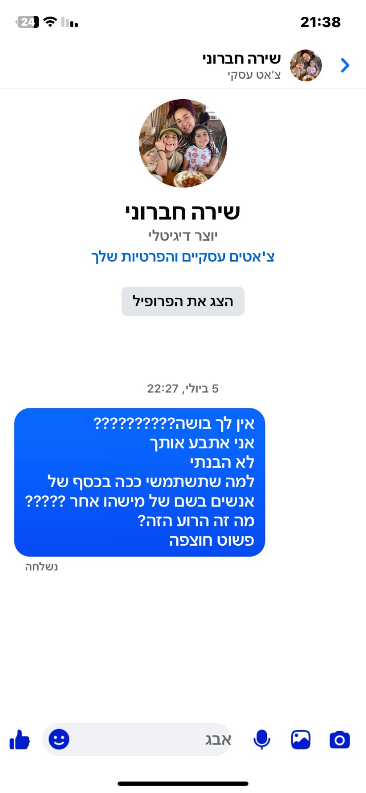 "אנשים כתבו לי – איך הם לא מתביישים לעשות דבר כזה לאחות שכולה", היא מספרת, "המון אנשים דיווחו על הפרופיל, ניסו לעזור לי, אבל הרגשתי שזה כמו להילחם בקיר". חברוני, שלא יודעת מי עומד מאחורי ההתחזות, מספרת ששלחה הודעה גם לפרופיל המזויף עצמו - "אין לך בושה?? אני אתבע אותך... למה שתשתמשי ככה בכסף של אנשים בשם של מישהו אחר?? מה זה הרוע הזה? פשוט חוצפה". כצפוי, היא לא קיבלה כל תשובה.