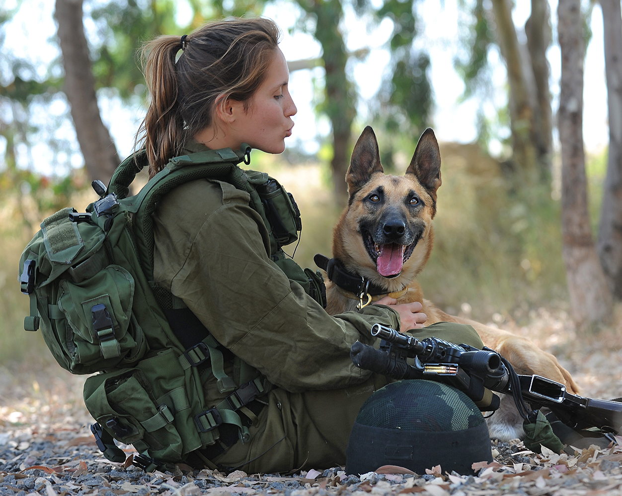 בין אימון אחד לשני, חיילת ביחידת 'עוקץ' לוקחת פסק זמן כדי לנוח ולהסתכל באהבה בכלב שמלווה אותה לכל אימון ובכל פעילות מבצעית. אזולאי: "אתה רואה כמה אהבה יש בין החיילת לכלב גם בעתות מלחמה לצד אנושיות מדהימה".