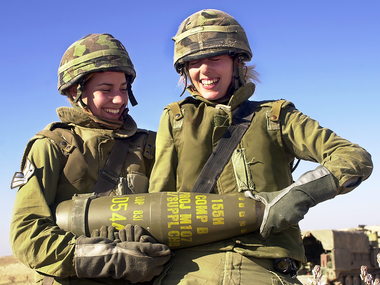 חיילות ביחידת 'מורן' שבחיל התותחנים, מרימות פגז במהלך אימון בבסיס בדרום הארץ. אזולאי: "החיילות בקורס מפקדות מוכיחות שהן לא פחות מוכשרות מהחיילים ושגם הן מסוגלות לתפקד בתנאי שטח קשים".